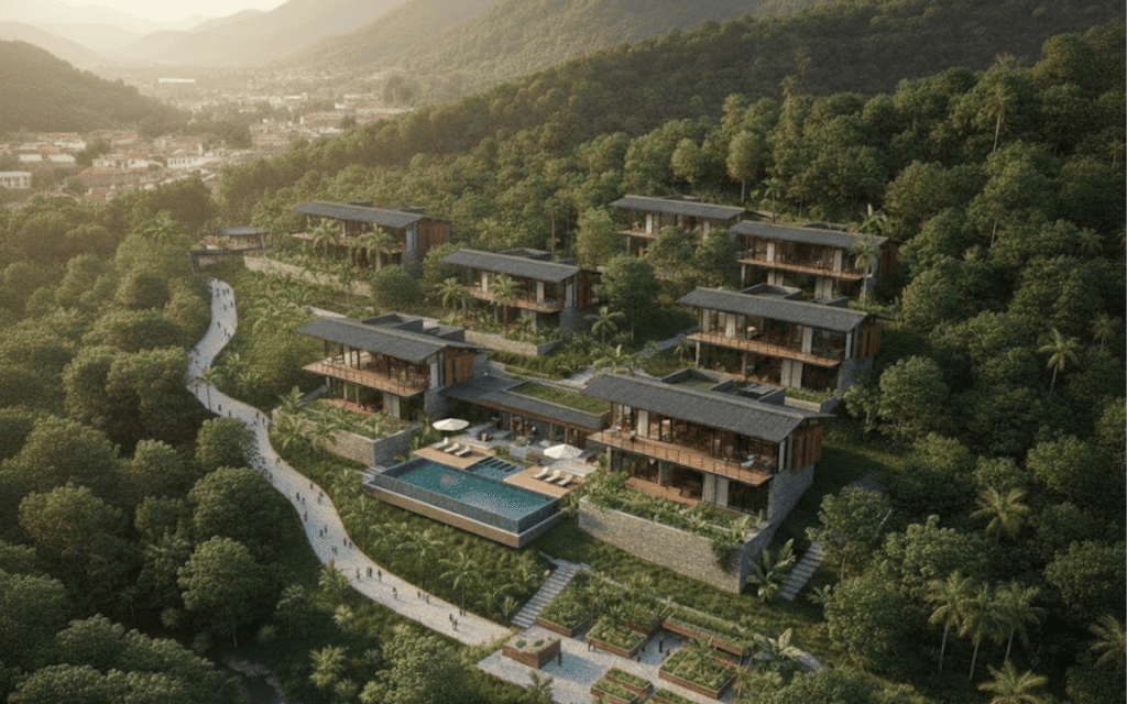 Las decisiones de diseño responden a un enfoque regenerativo, orientado a preservar la biodiversidad, proteger los recursos hídricos y garantizar una experiencia residencial coherente con el entorno natural y cultural de Guaduas.